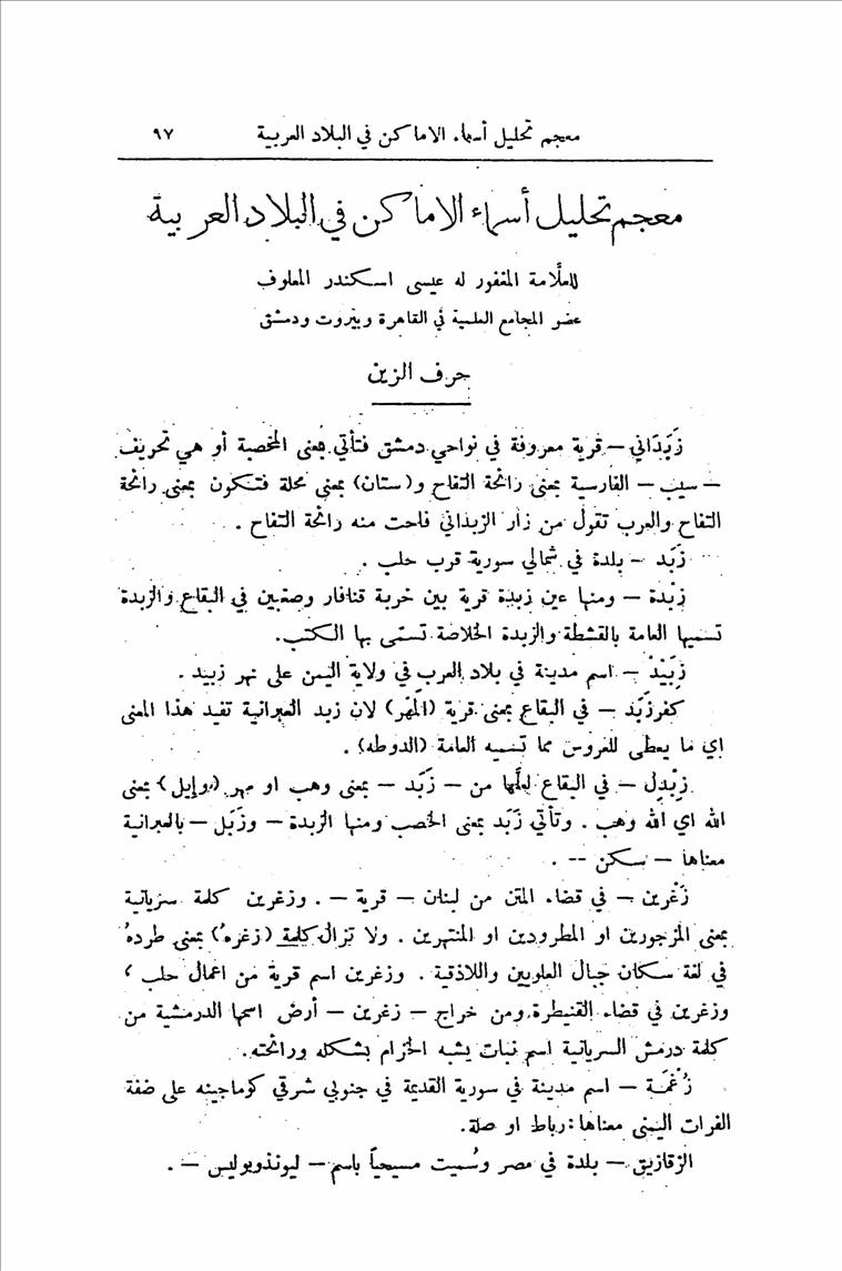 معجم تحليل أسماء الأماكن في البلاد العربية - حرف الزين