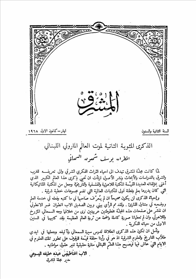 الذكرى المئوية الثانية لموت العالم الماروني اللبناني