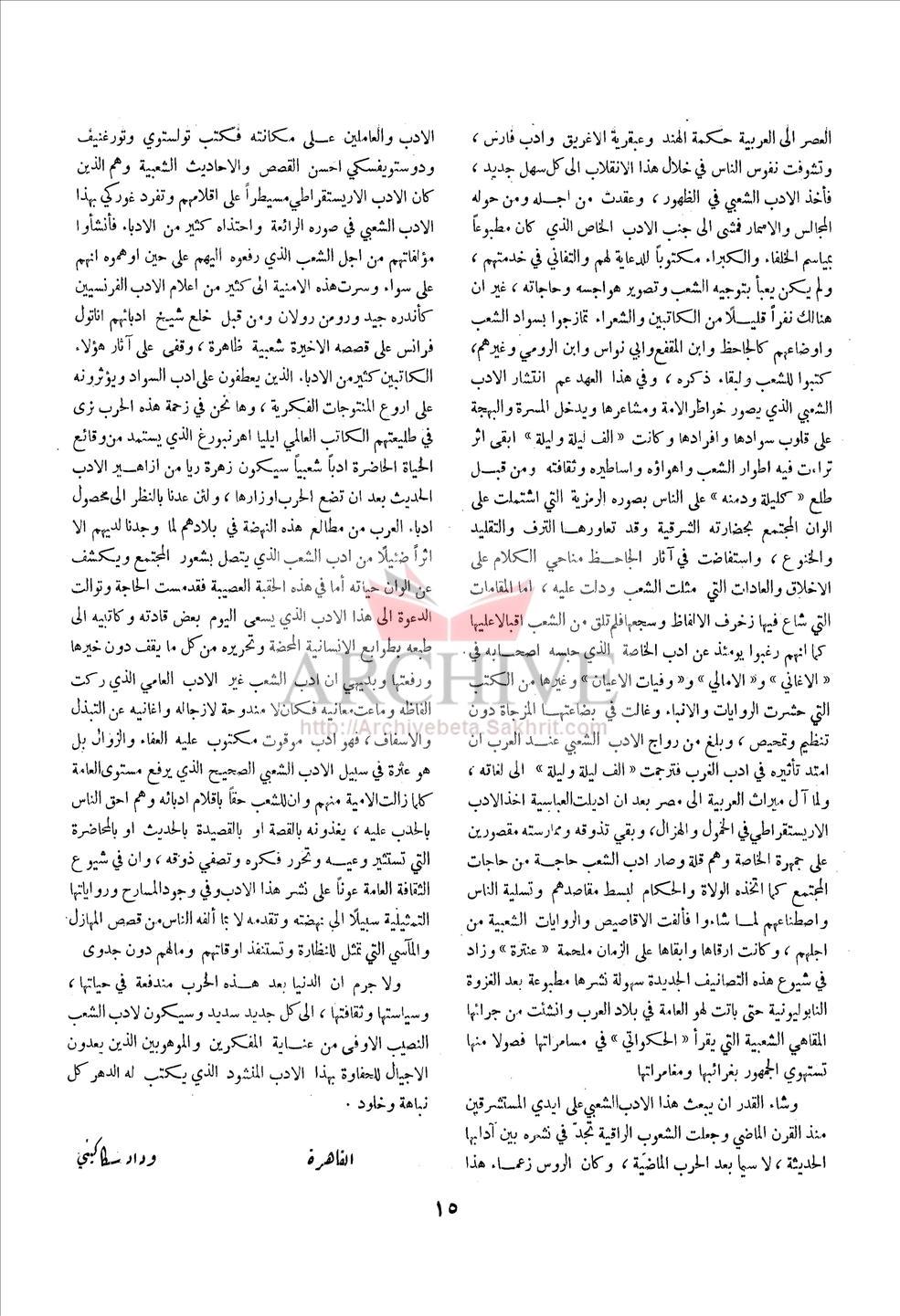 للمجلات الأدبية والثقافية العربية