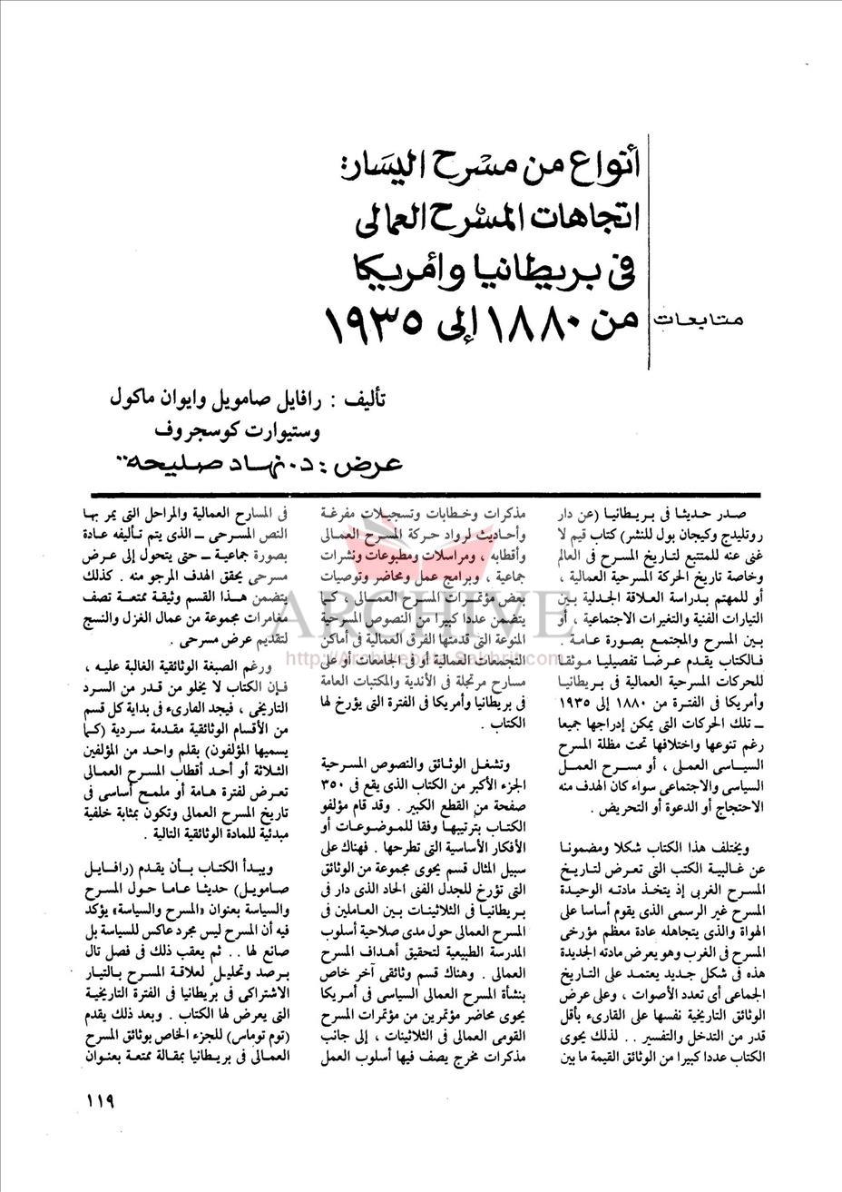 أنواع من مسرح اليسار: اتجاهات المسرح العمالي في بريطانيا وأمريكا من 1880 إلى 1935