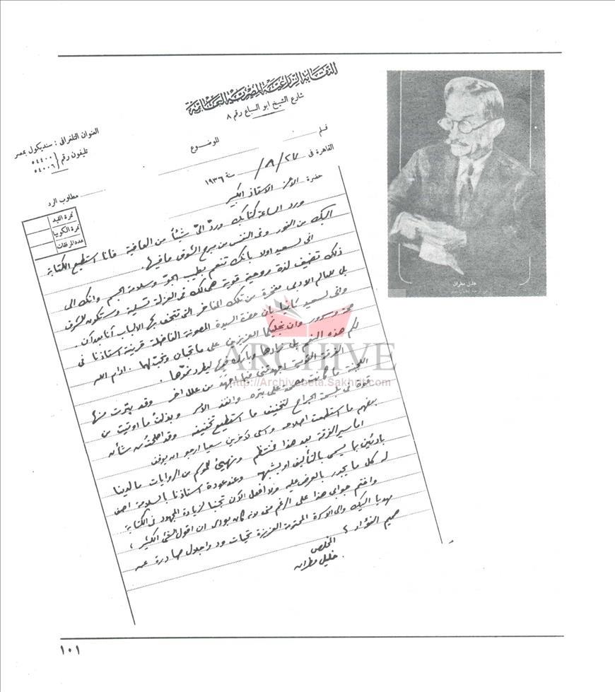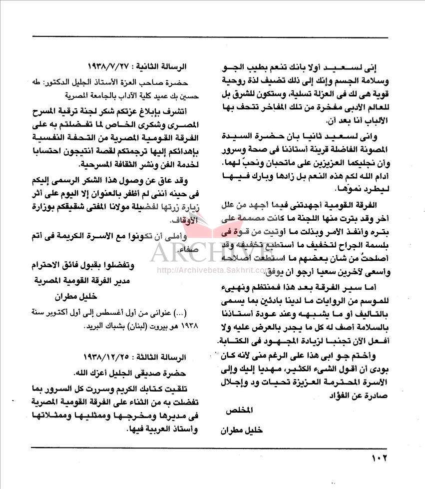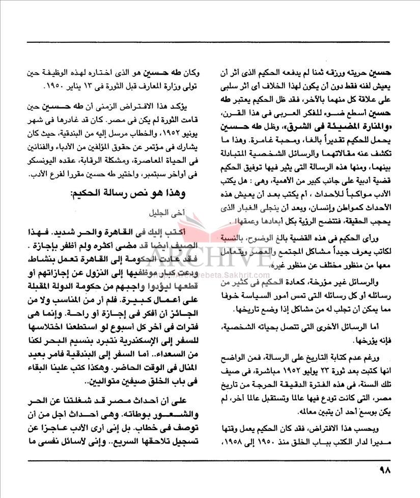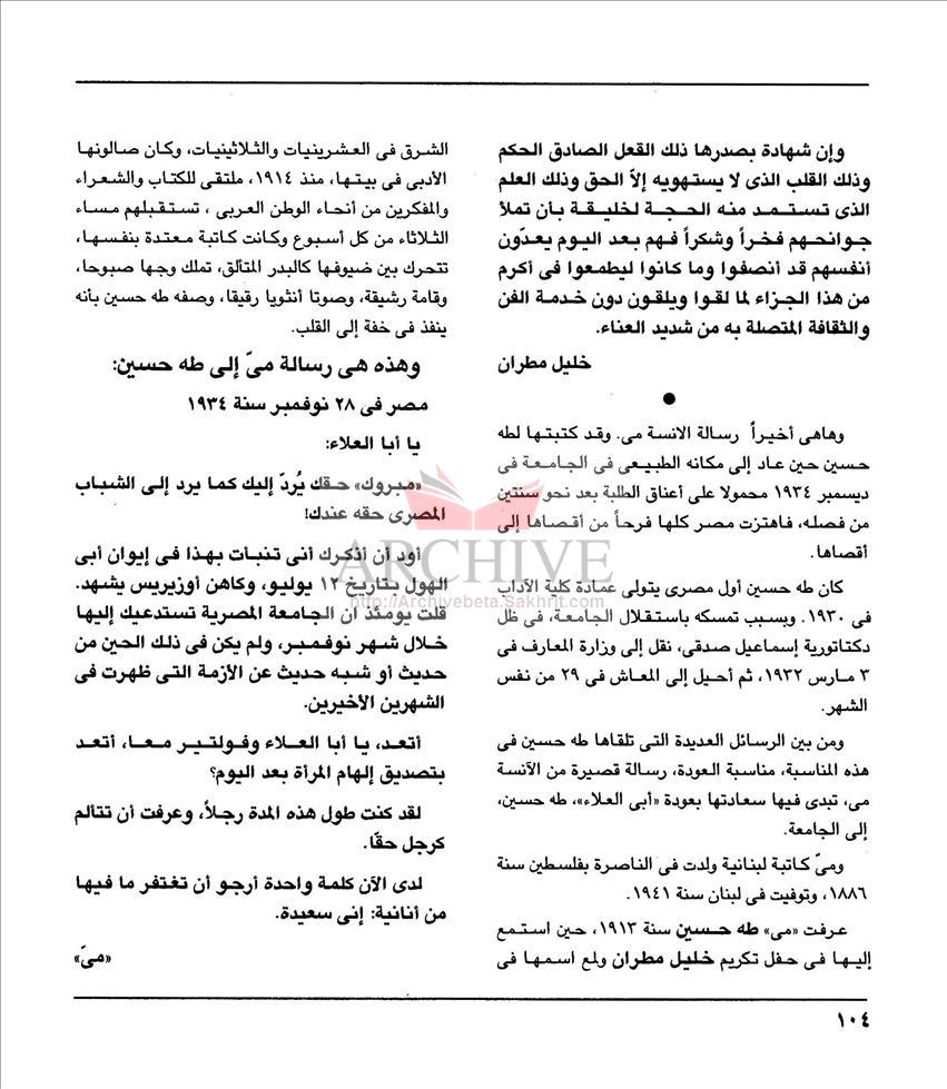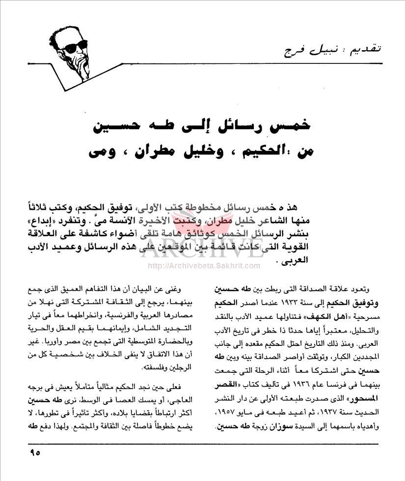 خمس رسائل إلى طه حسين من:الحكيم ، وخليل مطران،ومى