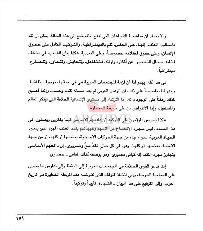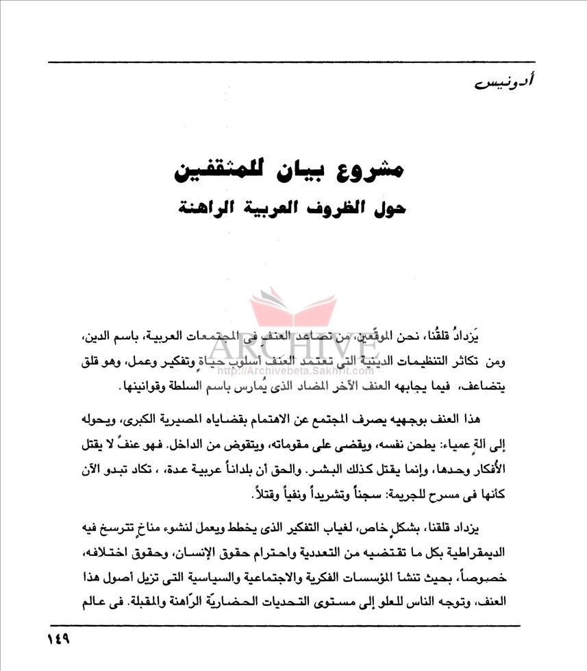 مشروع بيان للمثقفين حول الظروف العربية الراهنة