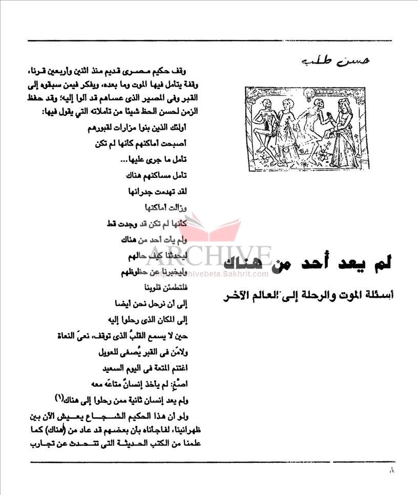 لم يعد أحد من هناك أسئلة الموت والرحلة إلى العالم الآخر