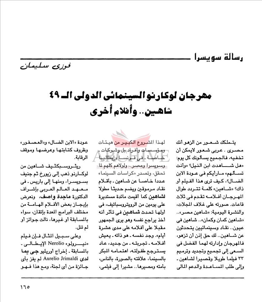 مهرجان لوكارنو السينمائى الدولى الـ49 شاهين..وأفلام أخرى