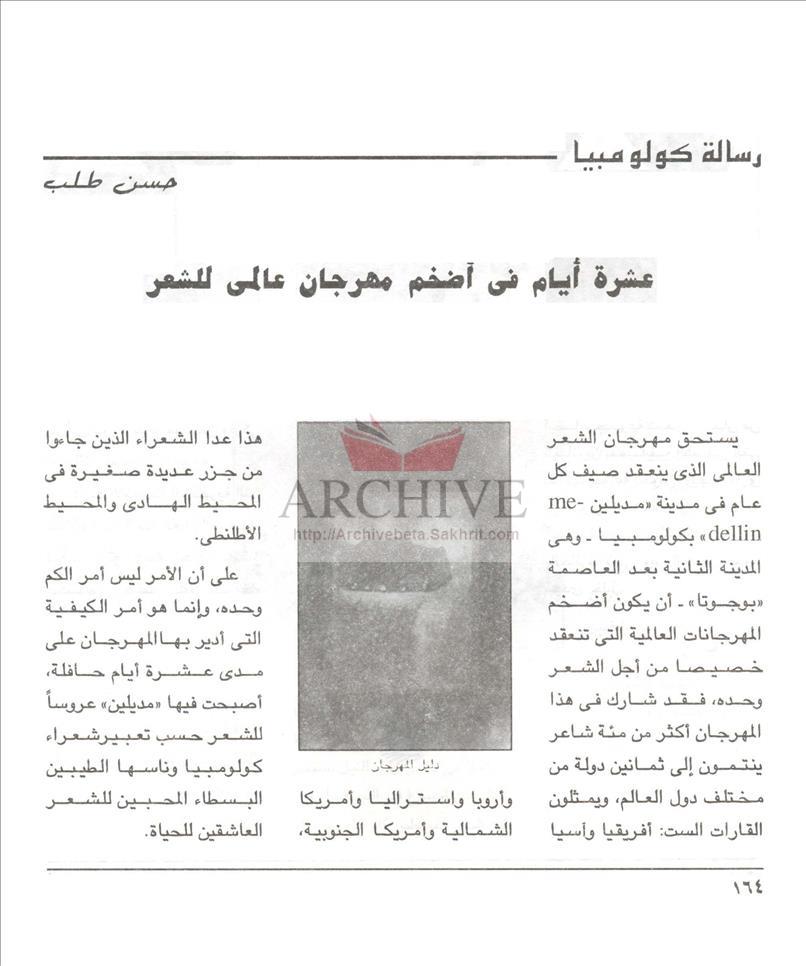 رسالة كولومبيا--- عشرة أيام فى أضخم مهرجان عالمى للشعر