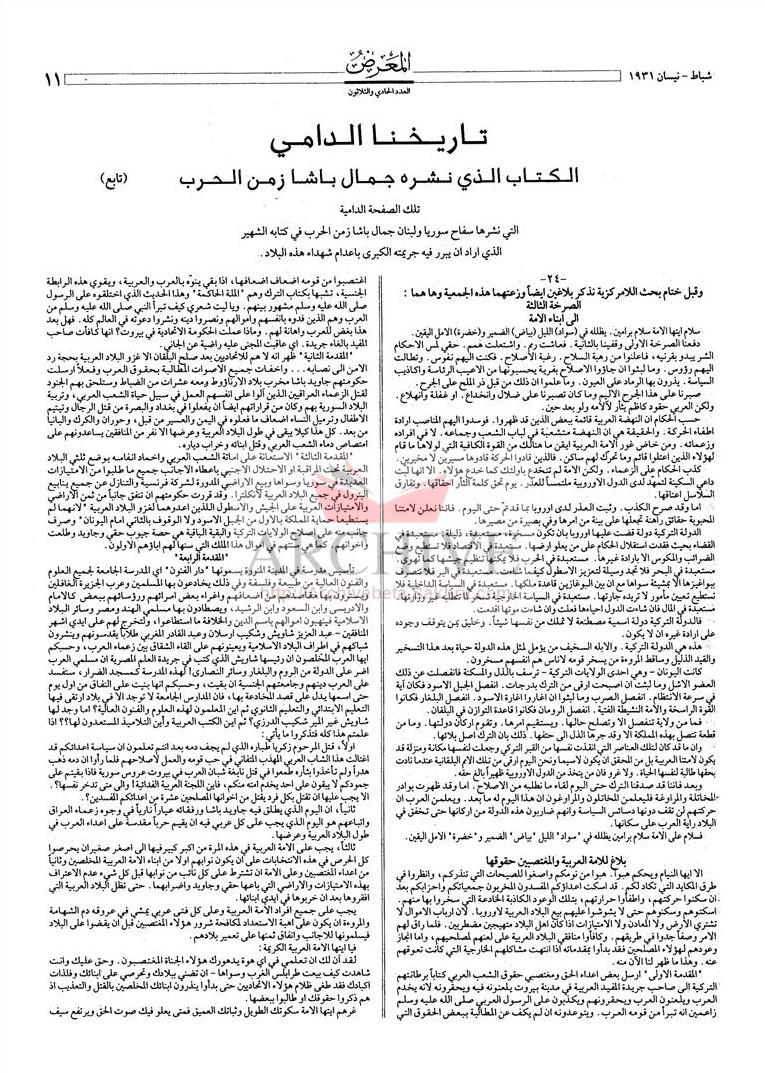 تاريخنا الدامي: الكتاب الذي نشره جمال باشا زمن الحرب- تابع