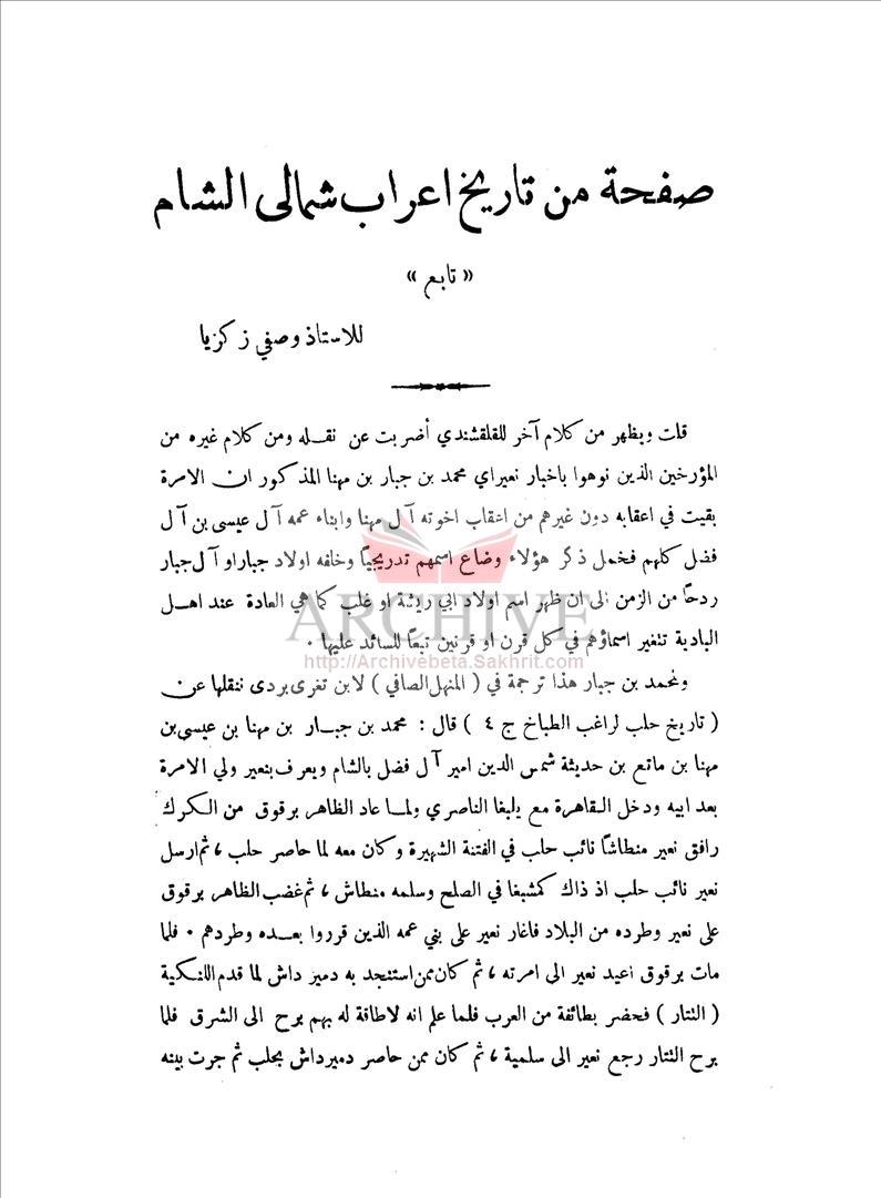 صفحة من تاريخ أعراب شمالي الشام