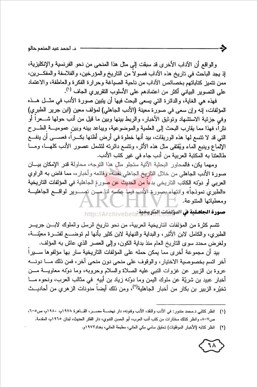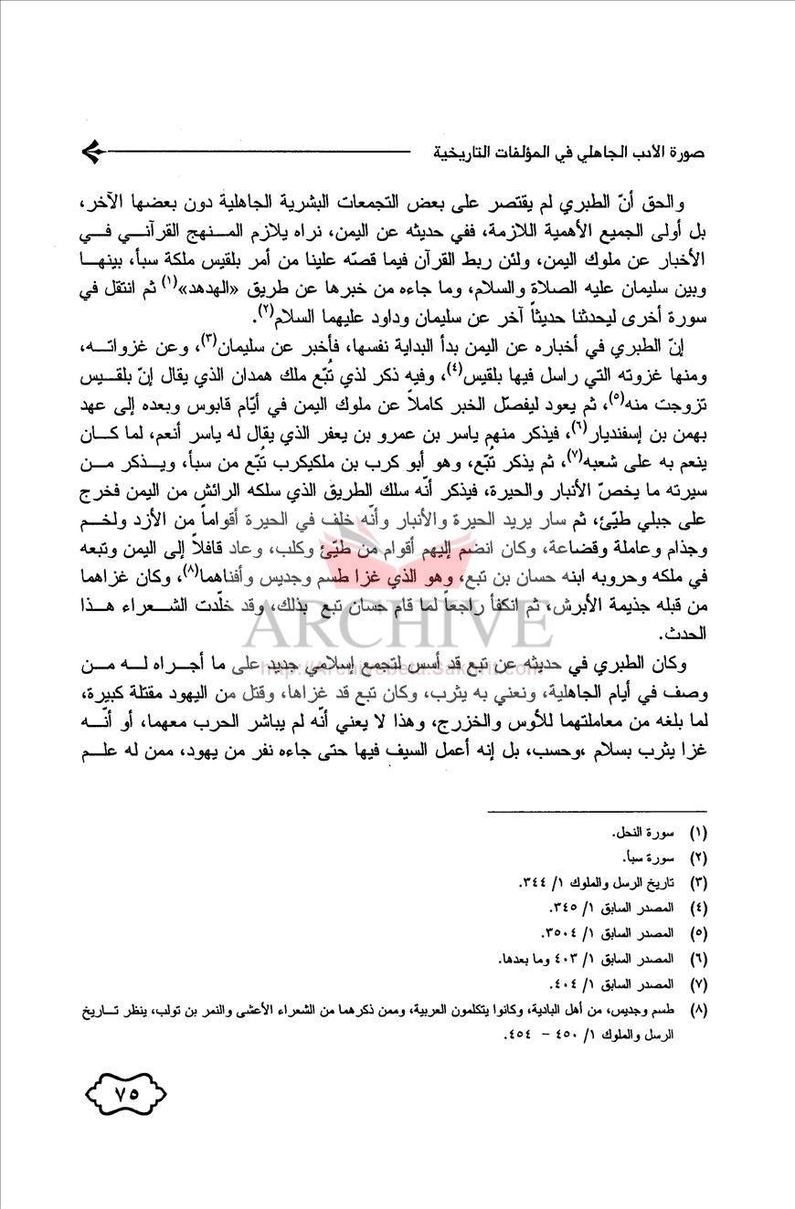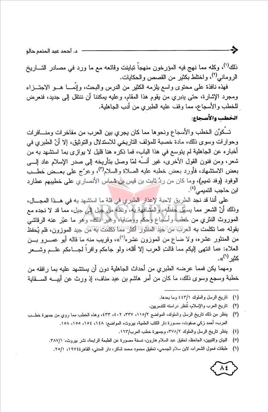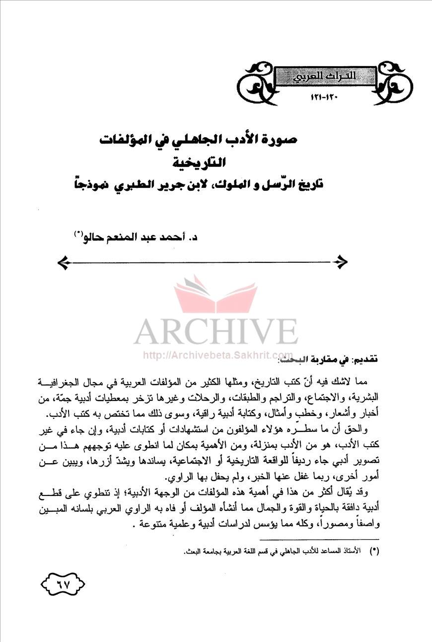 صورة الأدب الجاهلي في المؤلفات التاريخية: تاريخ الرسل والملوك لابن جرير الطبري نموذجا