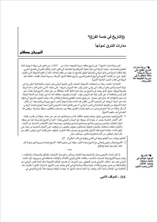 التاريخ في خدمة الفن مدارات الشرق نموذجا