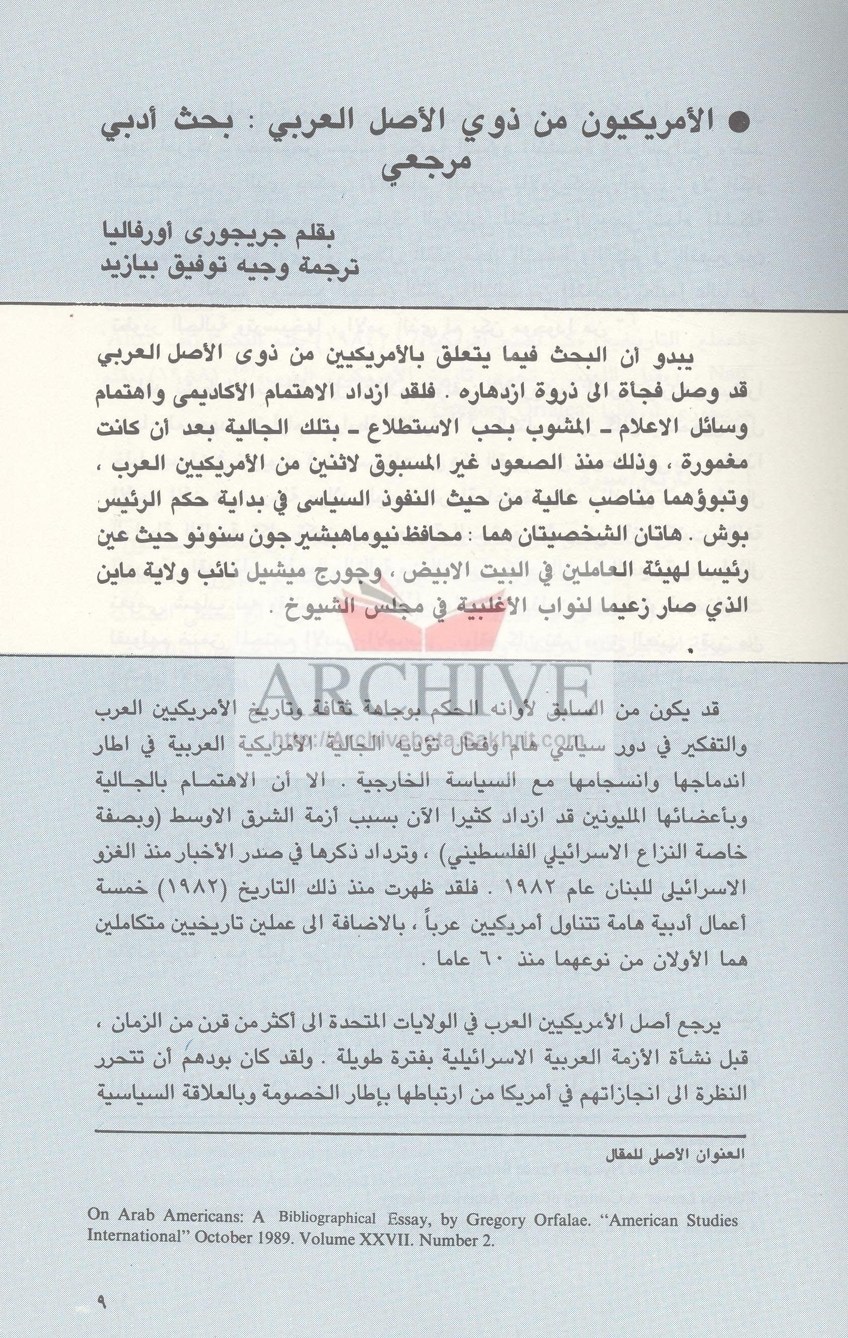 الأمريكيون من ذوي الأصل العربي: بحث أدبي مرجعي
