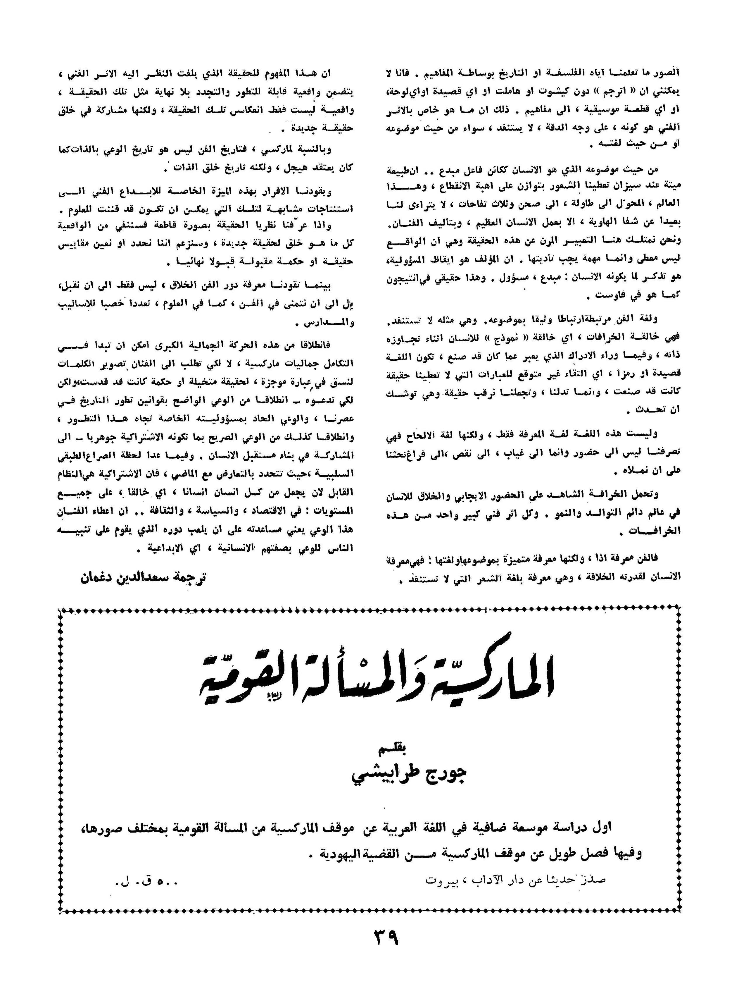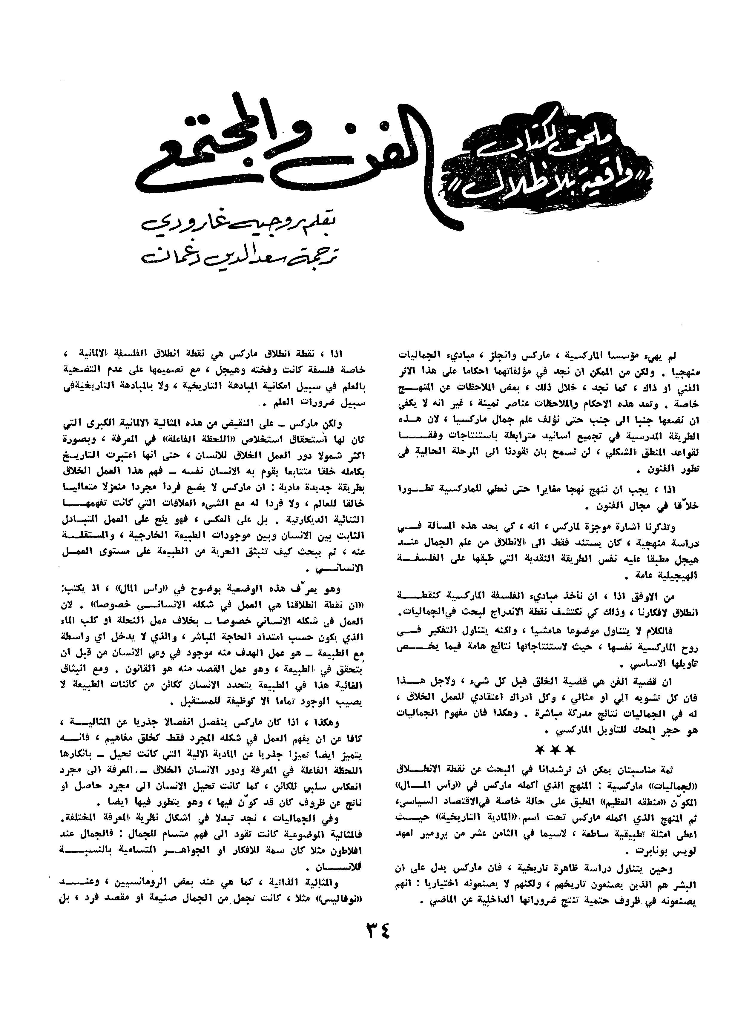 ملحق لكتاب واقعية بلا ظلال - الفن والمجتمع - ترجمة: سعد الدين دغمان