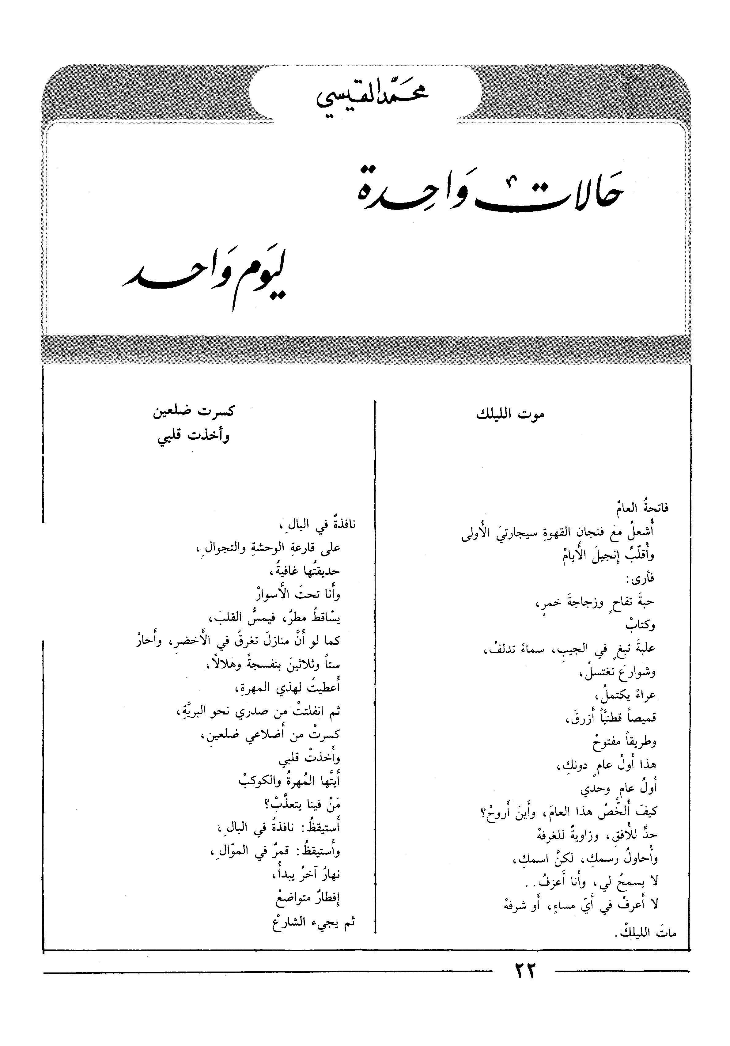 حالات واحدة ليوم واحد - قصيدة