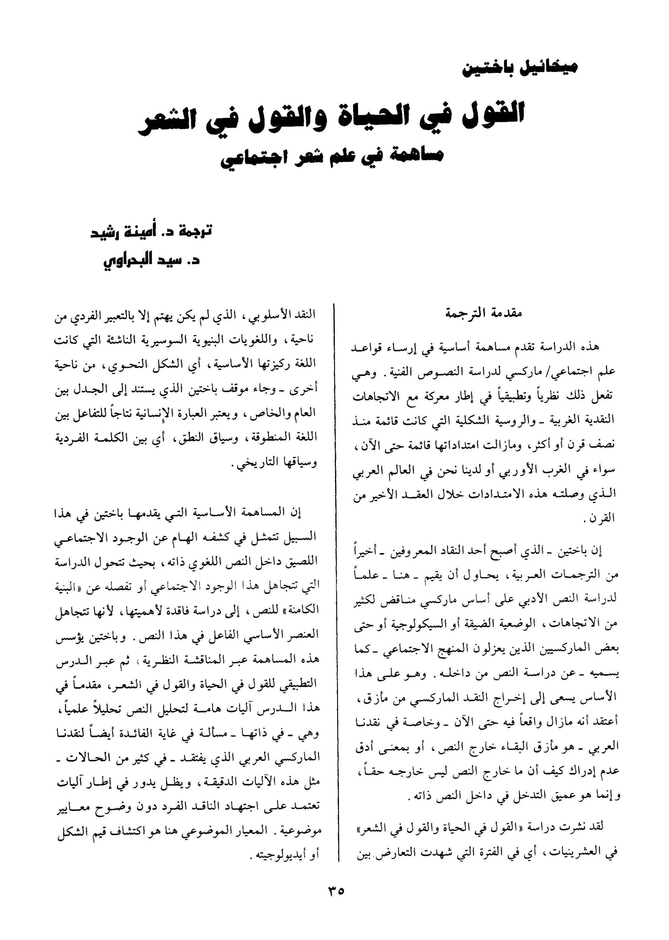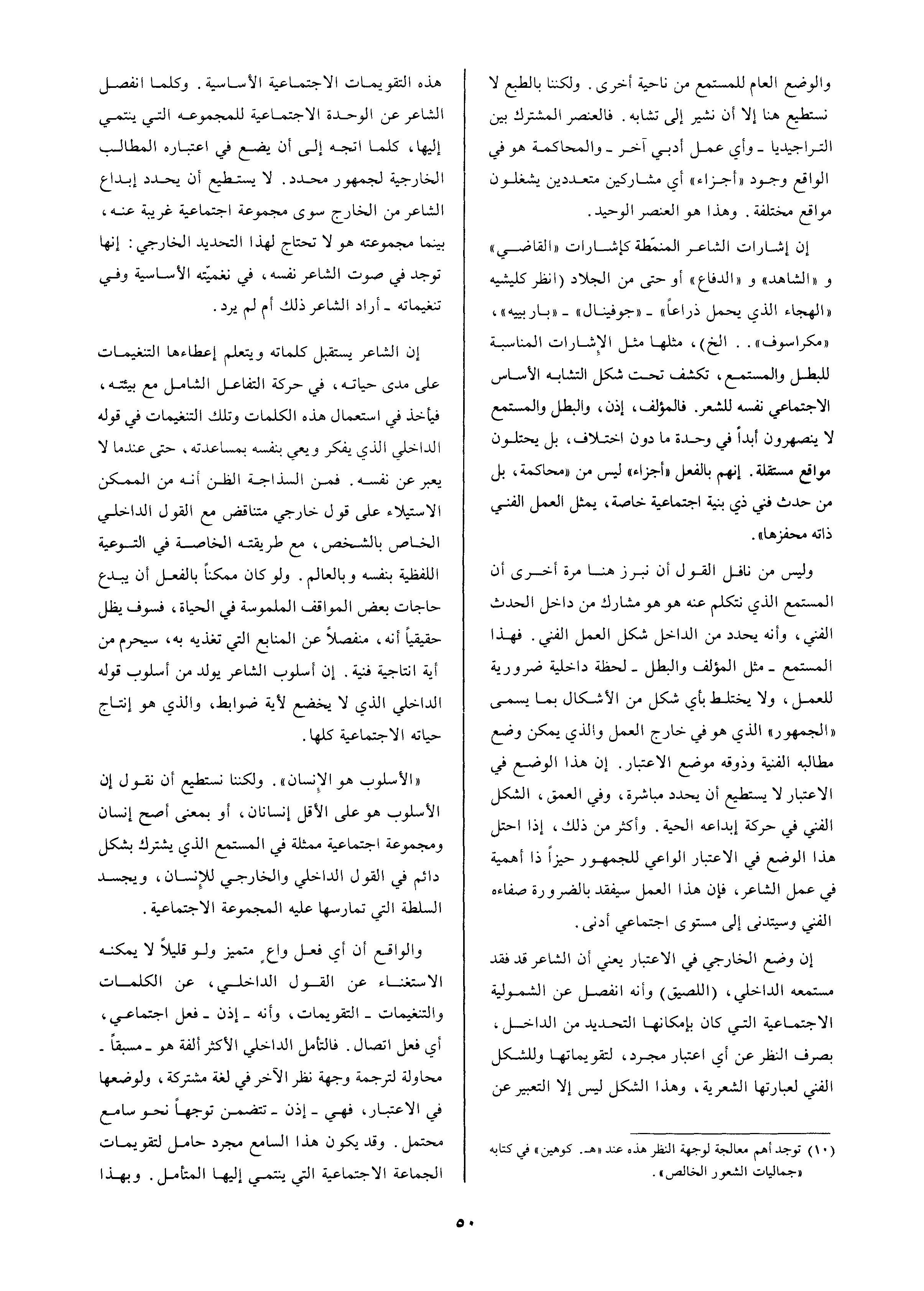 القول في الحياة والقول في الشعر : مساهمة في علم شعر اجتماعي