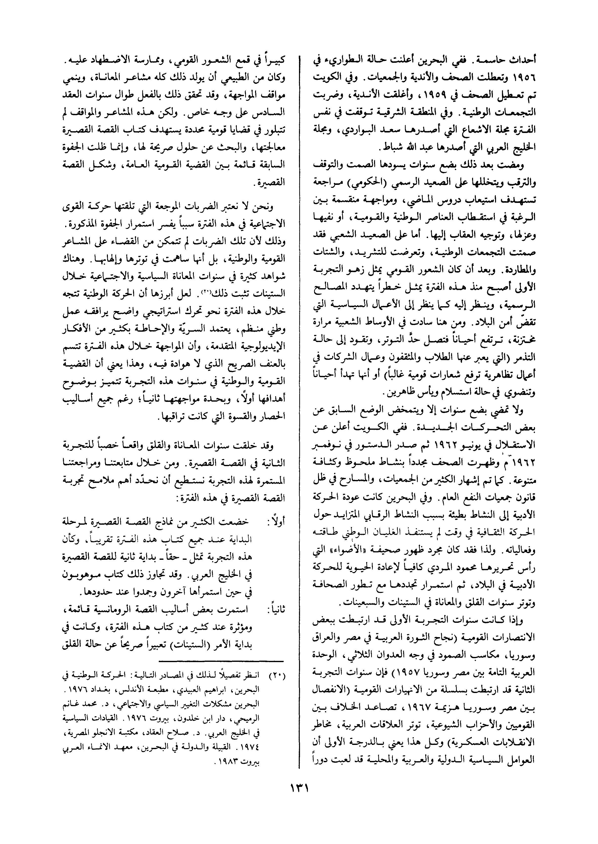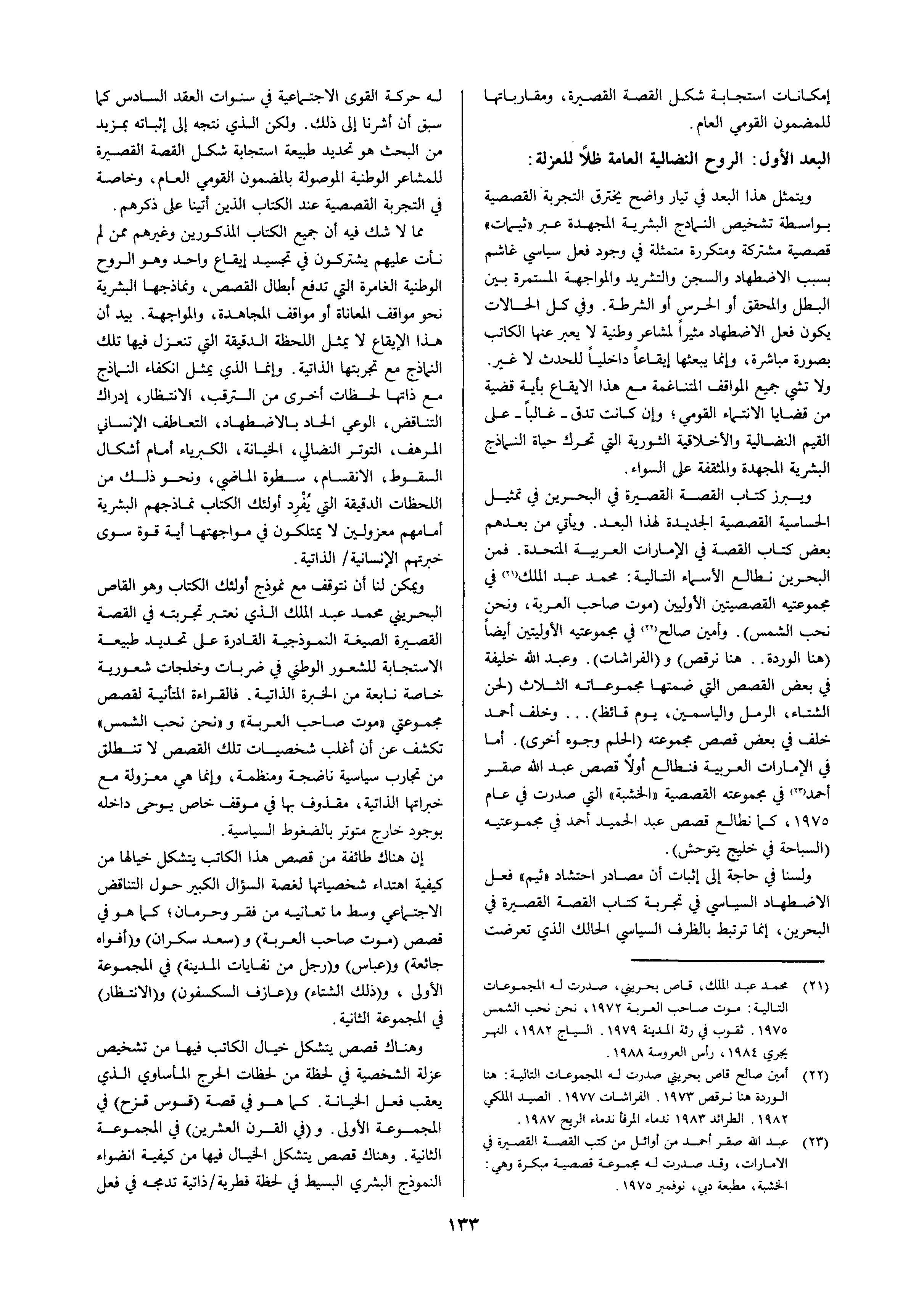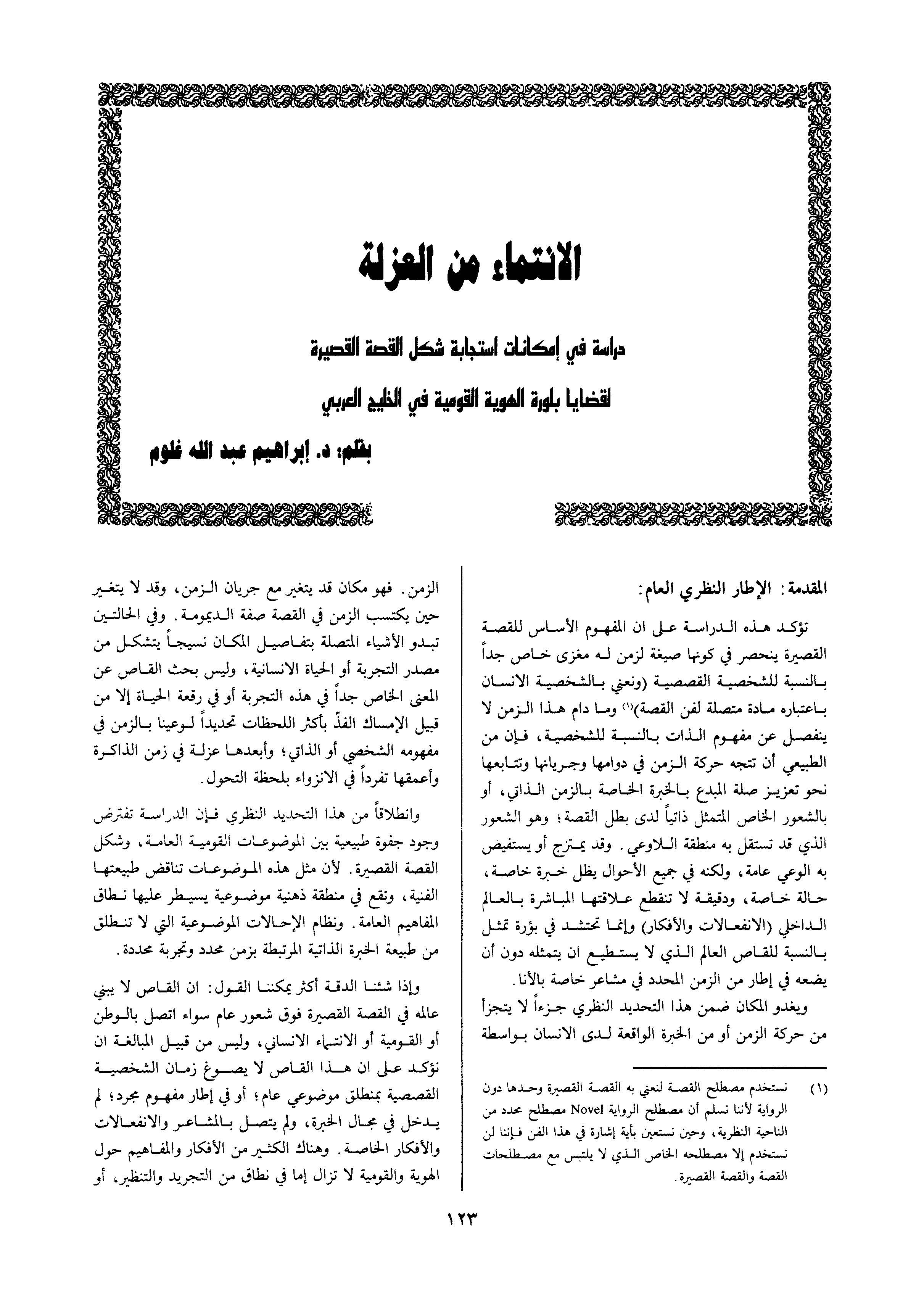 الانتماء من العزلة دراسة في إمكانات استجابة القصة القصيرة لقضايا بلورة الهوية القومية بالخليج