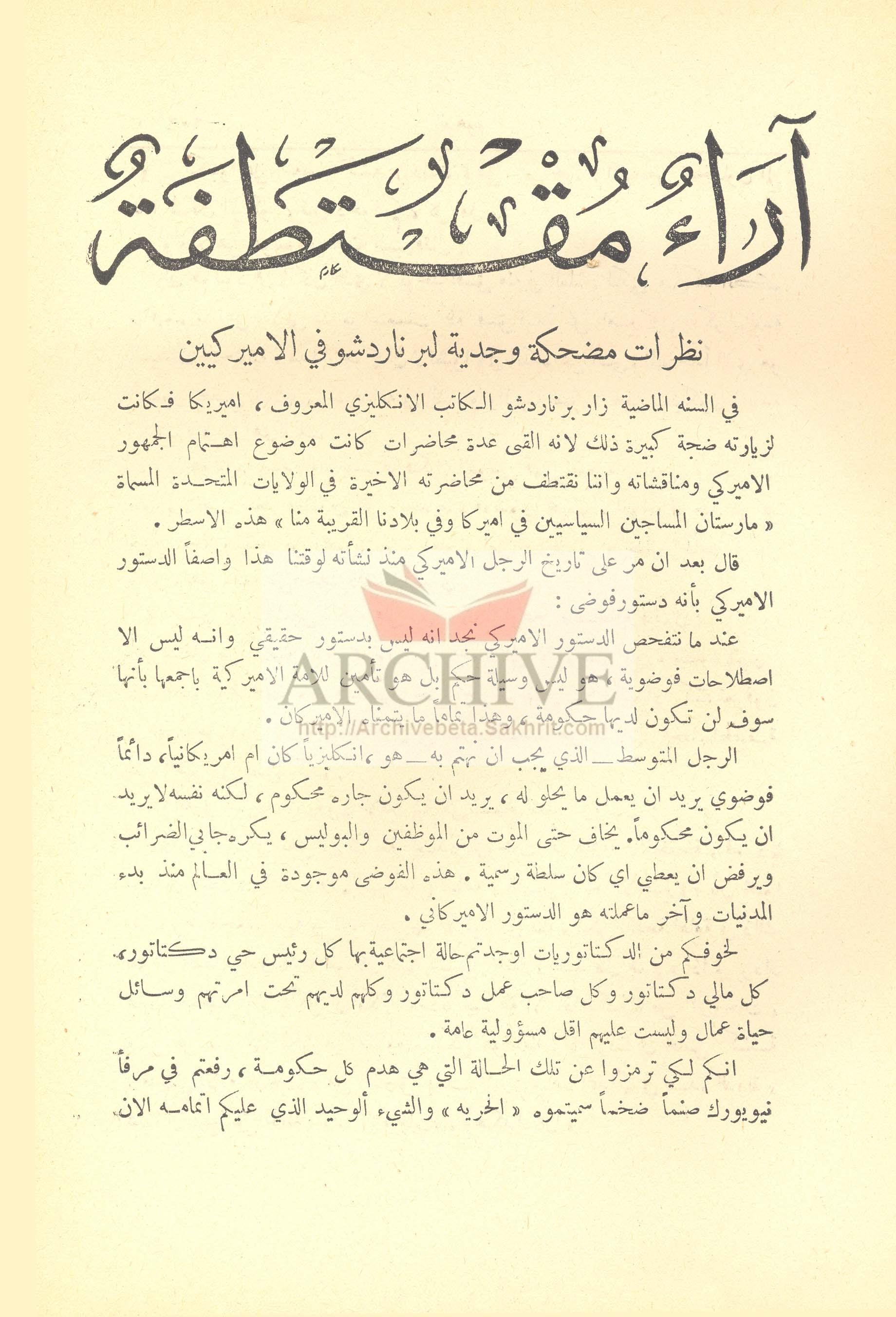 آراء مقتطفة: نظرات مضحكة وجدية لبرناردشو في الأميركيين