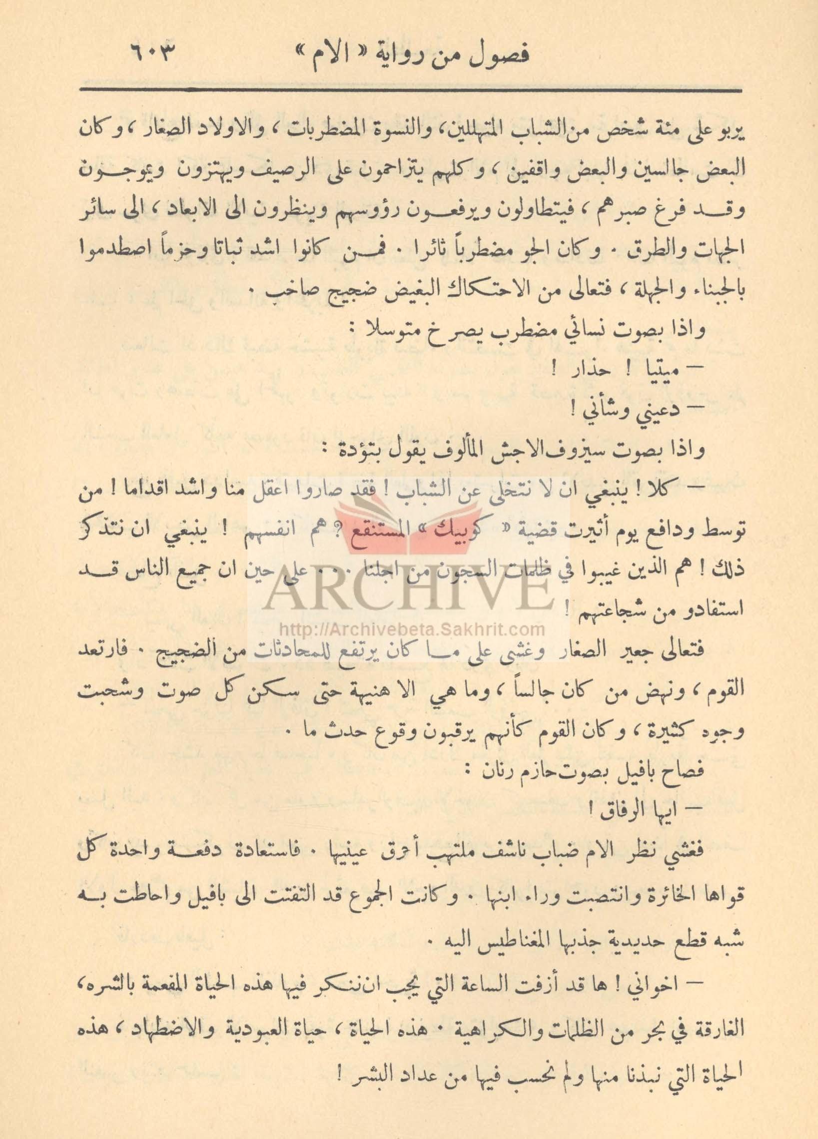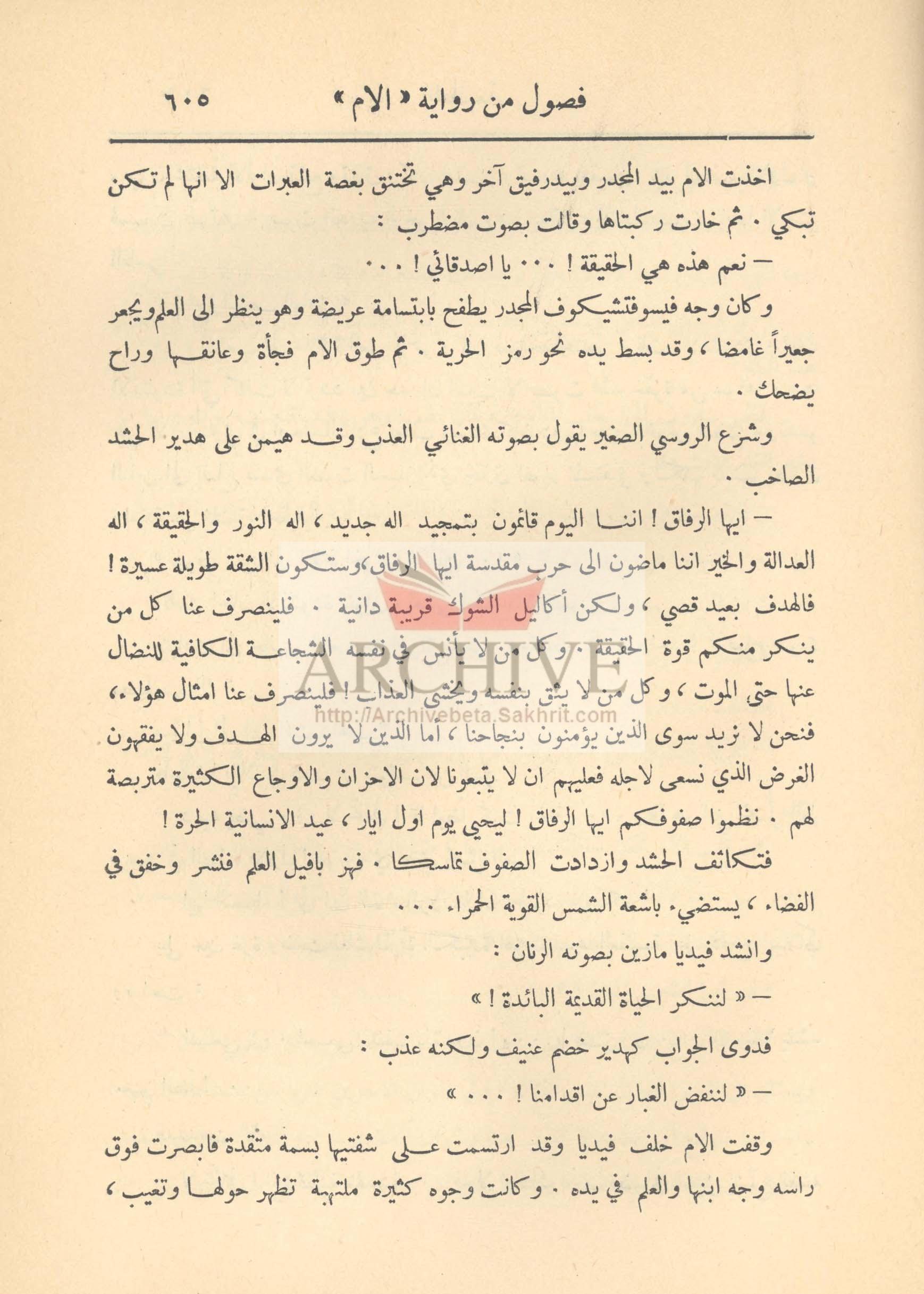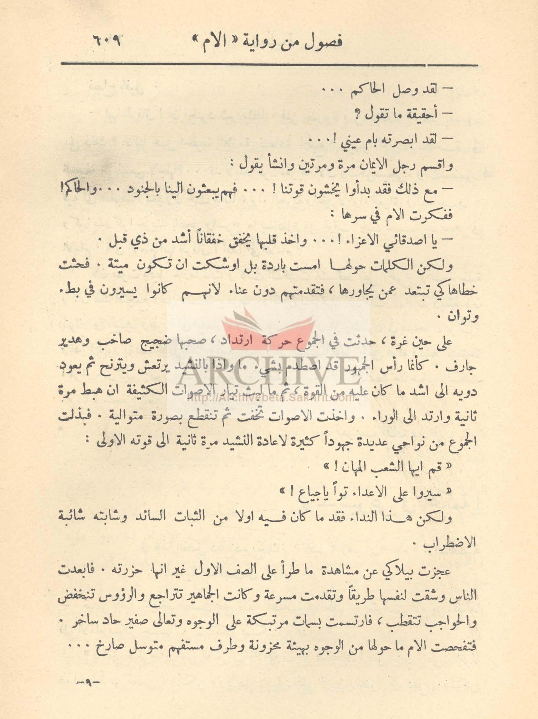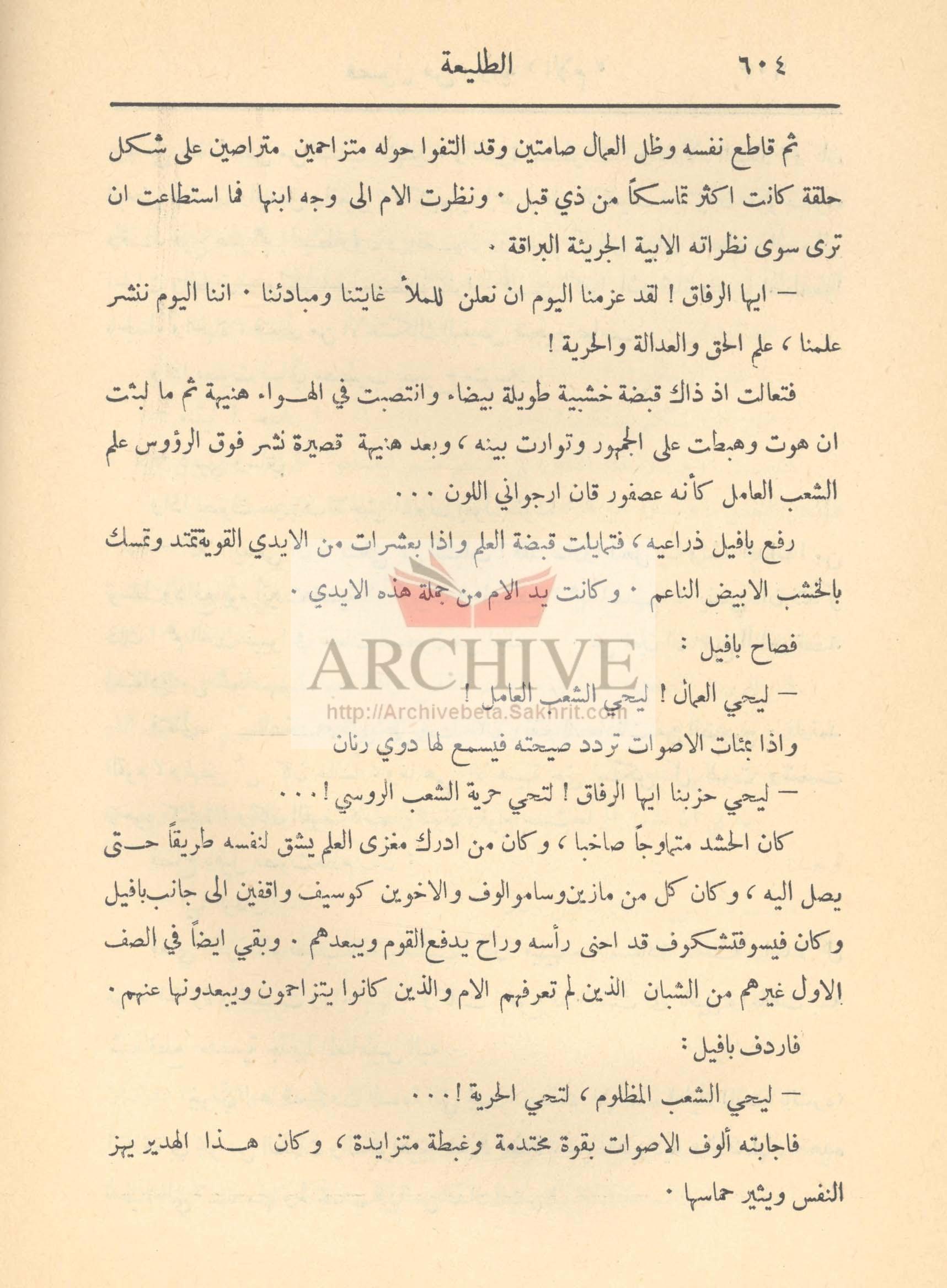 فصول من رواية "الام": 4- أول ايار - ترجمة: إليان ديراني