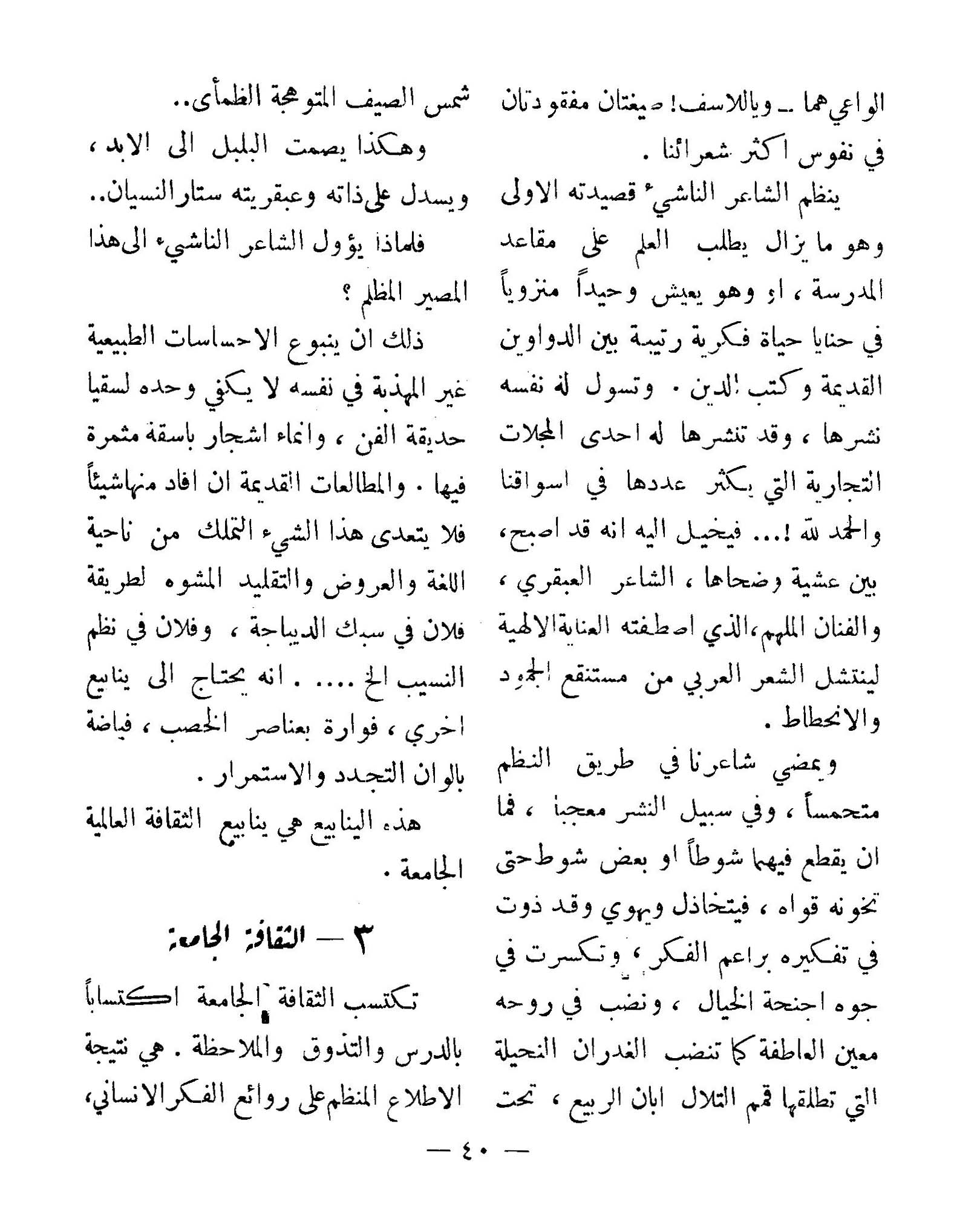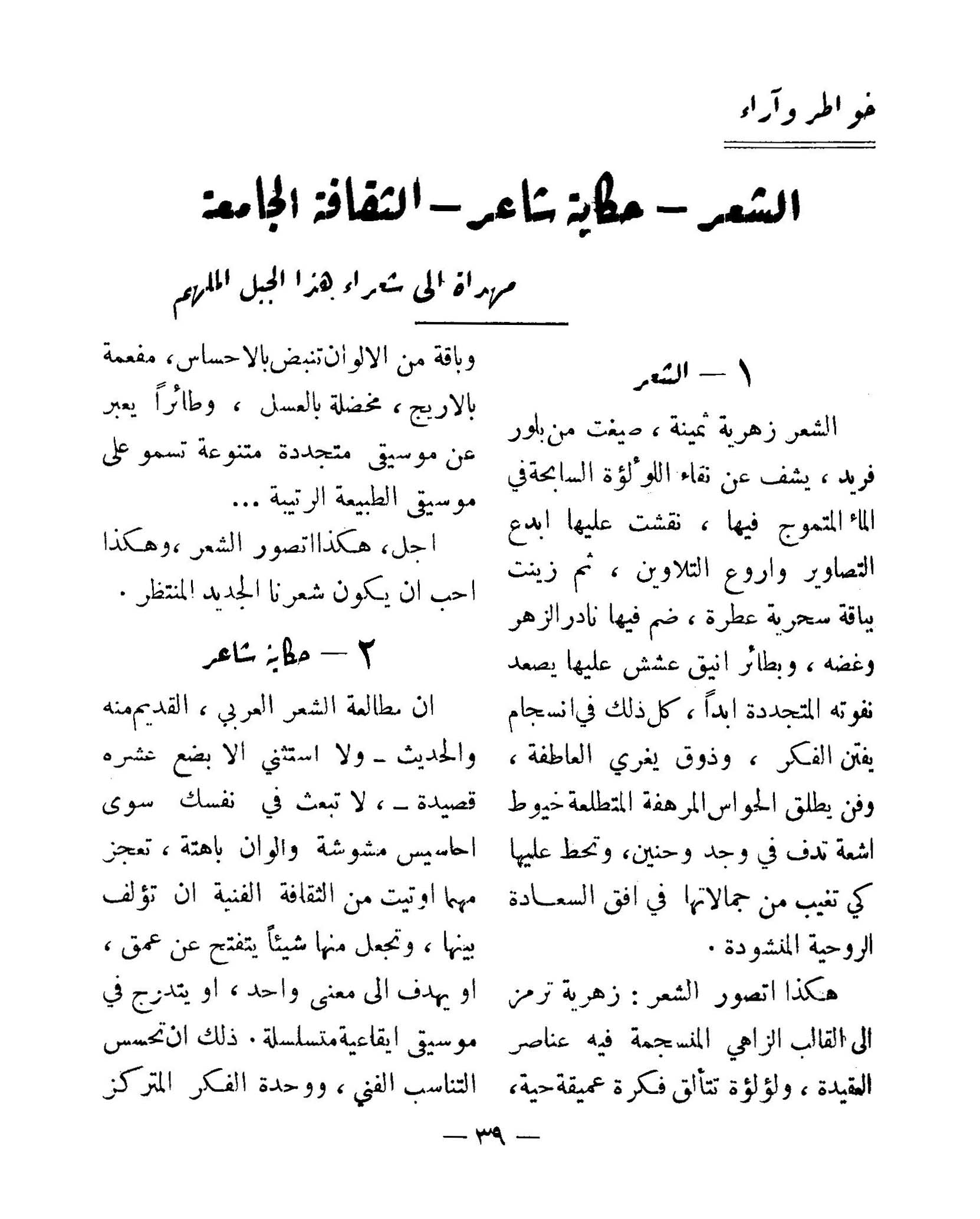 خواطر وآراء: الشعر- حكاية شاعر- الثقافة الجامعة