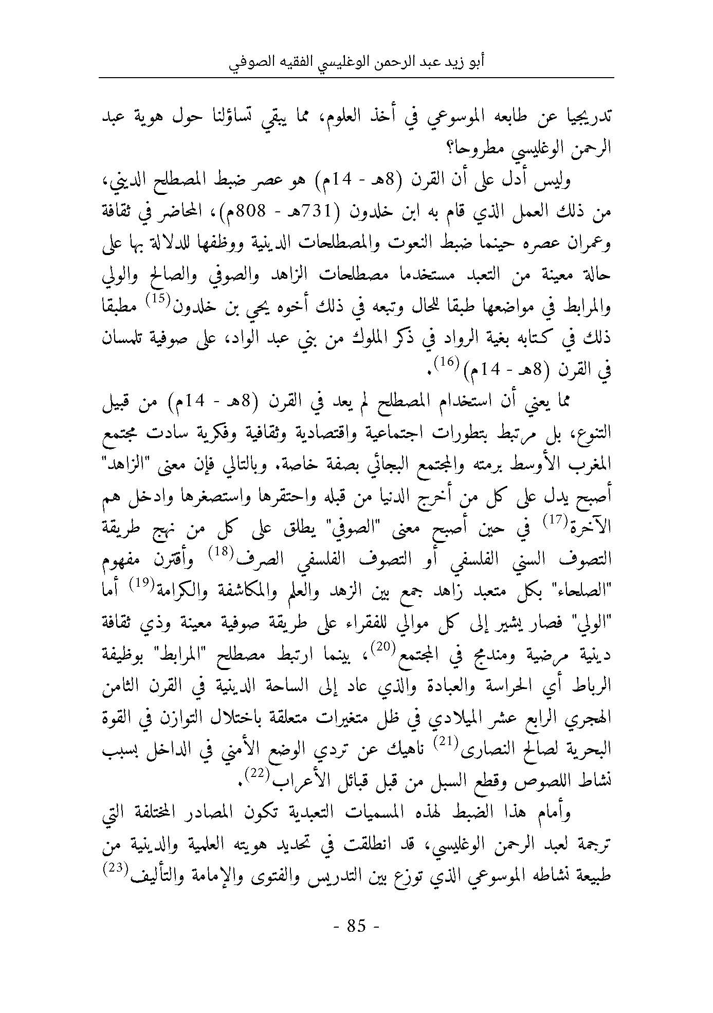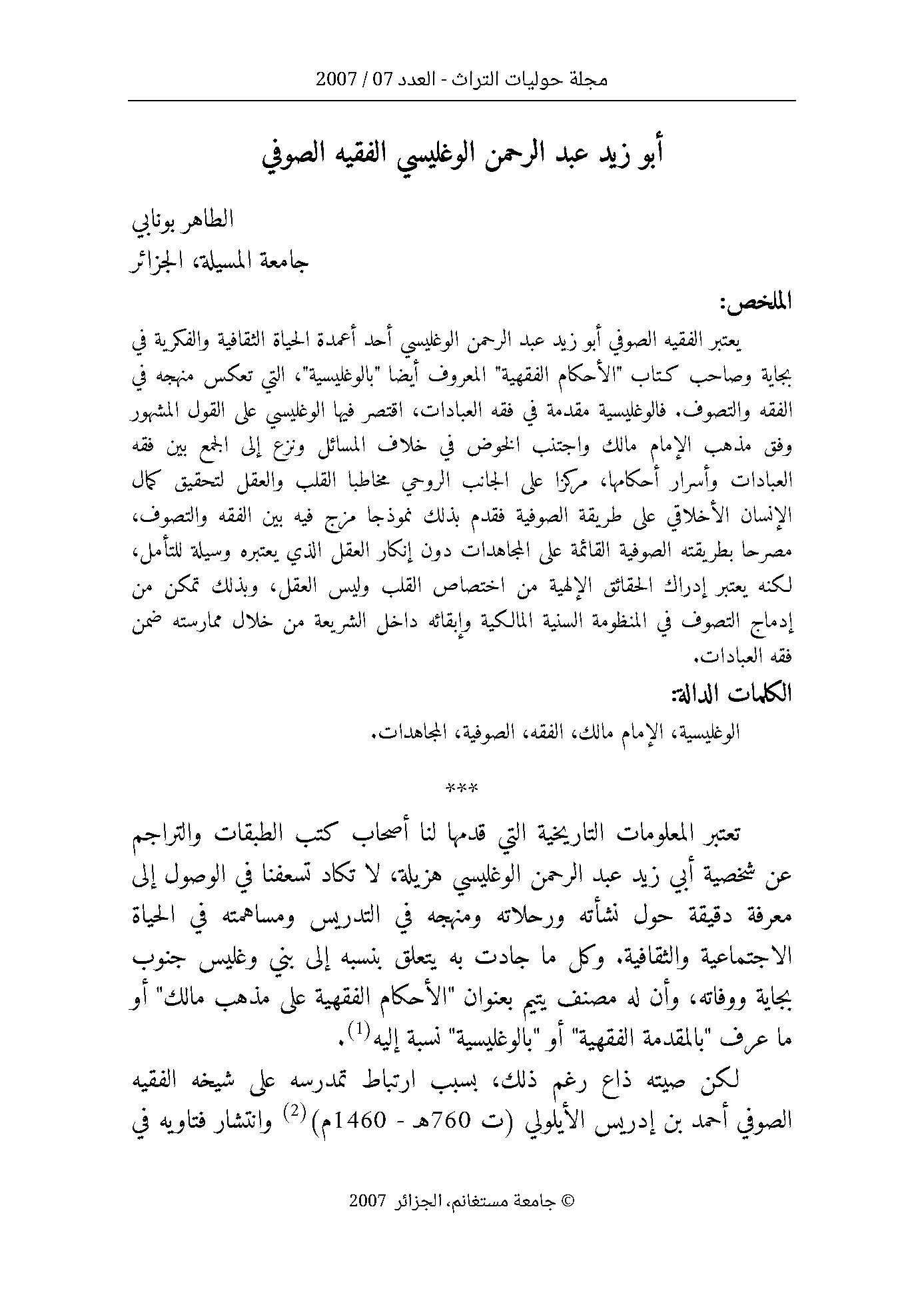 أبو زيد عبد الرحمن الوغليسي الفقيه الصوفي