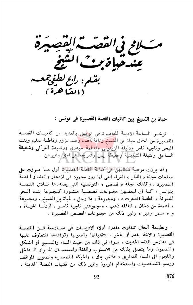 ملامح في القصة عند حياة بن الشيخ