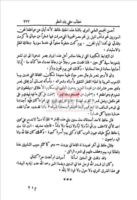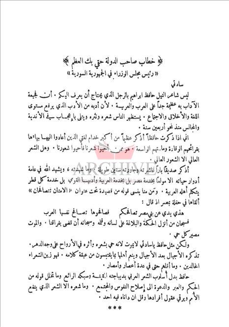 خطاب صاحب الدولة حقي بك العظم- رئيس مجلس الوزراء في الجمهورية السورية